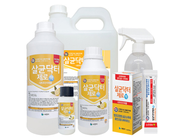 살균닥터제로액은 경수조건에서 코로나19 바이러스를 99.99% 이상 살균 효과가 있습니다